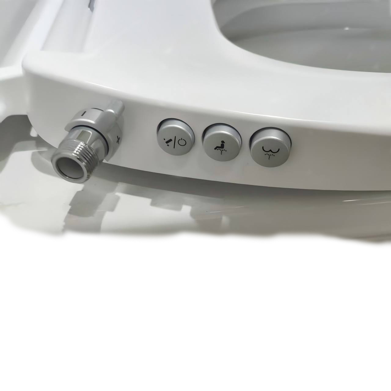 Nicht elektrischer Sitz, passend für längliche Toiletten, weißes Doppeldüsensystem, Umgebungswassertemperatur, hochwertiges Bidet mit einfacher Installation. Insgesamt bietet der Knopf-Toilettensitz die Vorteile einer einfachen Bedienung, hoher Flexibilität, präziser Steuerung, Wassereinsparung und Energieeinsparung sowie einfache Installation.